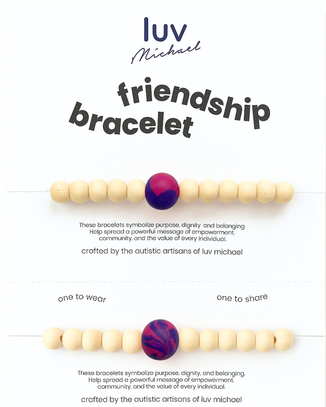 Handmade by autistic adults and sold as a set of 2, each bracelet features a unique bead, a personal story, and an invitation to share. Choose one that speaks to you and help share our story with someone you luv. Each purchase comes with 2 bracelets.